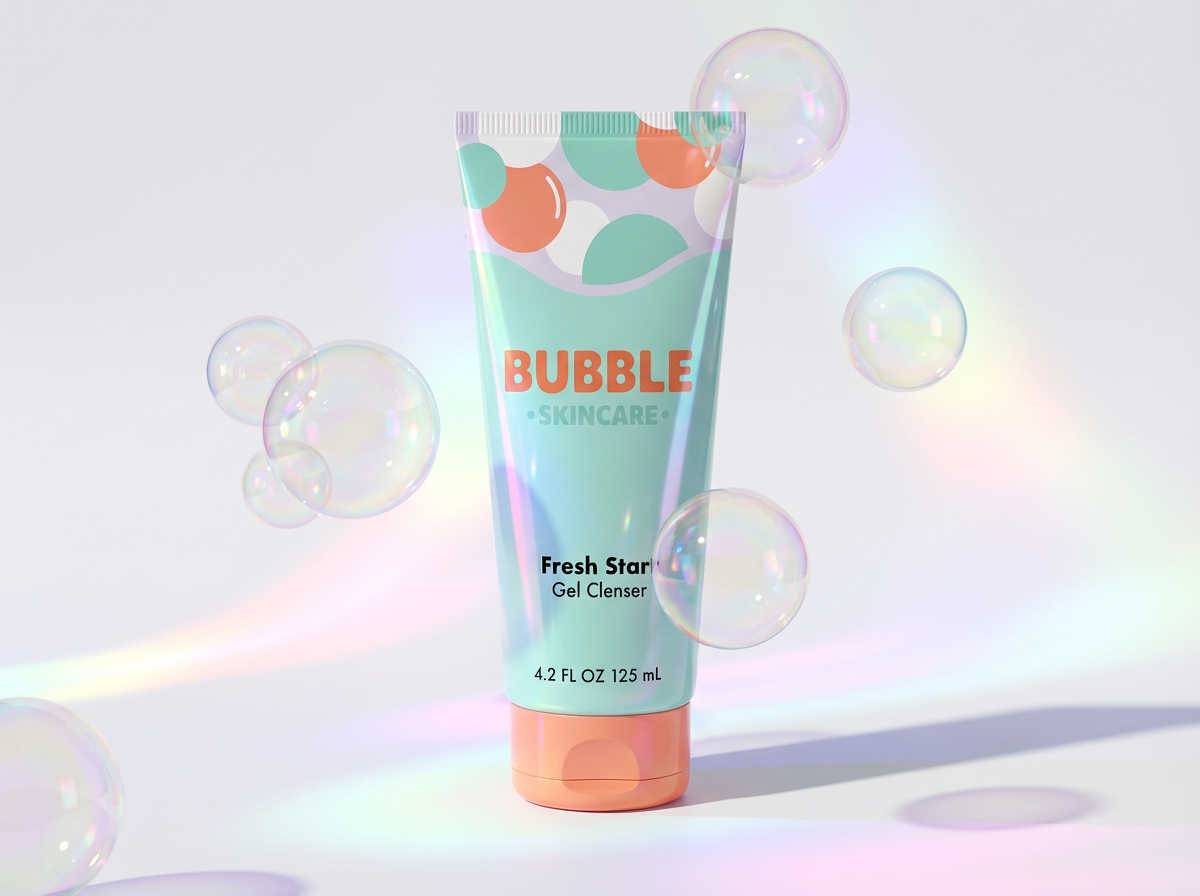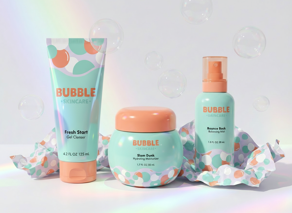 Create a Branding System rebranding the skincare brand called Bubble Skincare, a well known brand that has a good concept but not a strong logo or branding system.